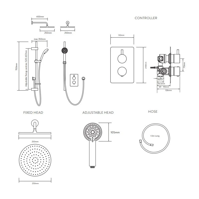 Dream Thermostatic Mixer Shower with Adjustable and Wall Fixed Heads – Round