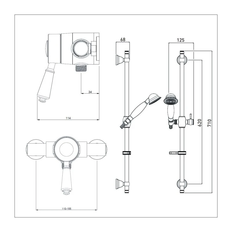 • Colonial2 Thermostatic Surface Mounted Shower Valve with Adjustable Riser