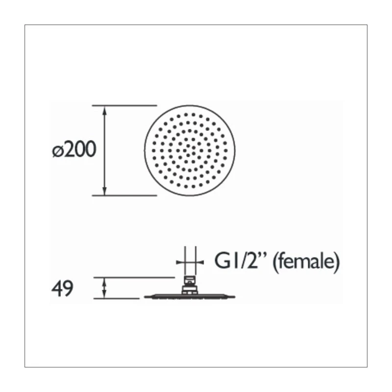 • Stainless Steel Slimline 200mm Round Fixed Head