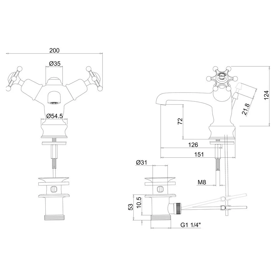 Consists of 1 x Basin mixer with pop up (T12), 1 x Birkenhead tap handle (pair) (T3) and 1 x Regent small single tap base
