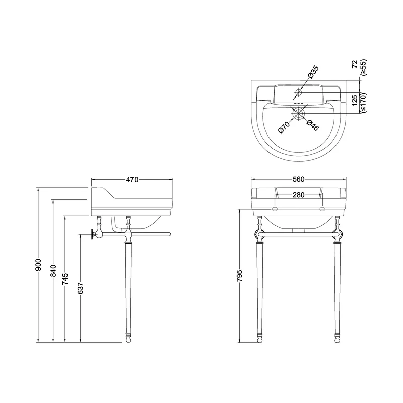 Consists of 1 x Edwardian round basin 56cm 1 tap hole (B6 1TH) and 1 x 56cm Round Basin Wash Stand Chrome (T24A CHR)