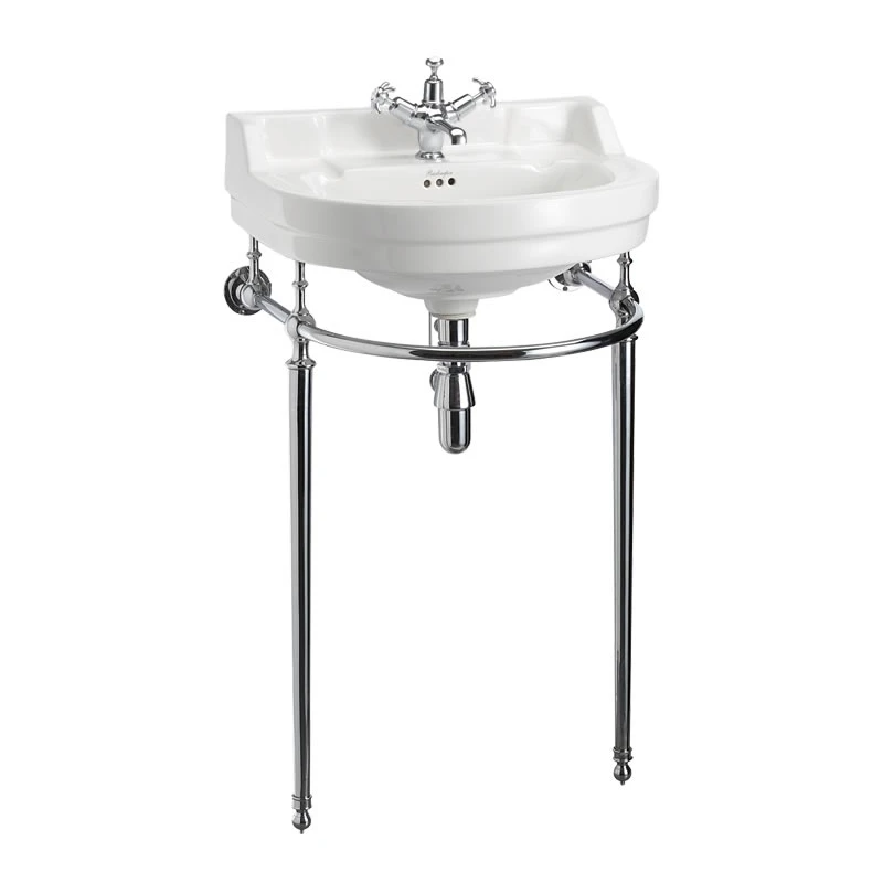 Edwardian Round 56 x 47cm Two Tap Hole Basin and Regal Chrome Basin Stand
