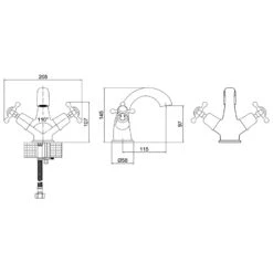 Consists of 1 x Edwardian round basin 56cm 2 tap holes (B6 2TH), 1 x 56cm Round Basin Wash Stand Chrome (T24A CHR) and 1 x Regal basin stand extension kit (T62)