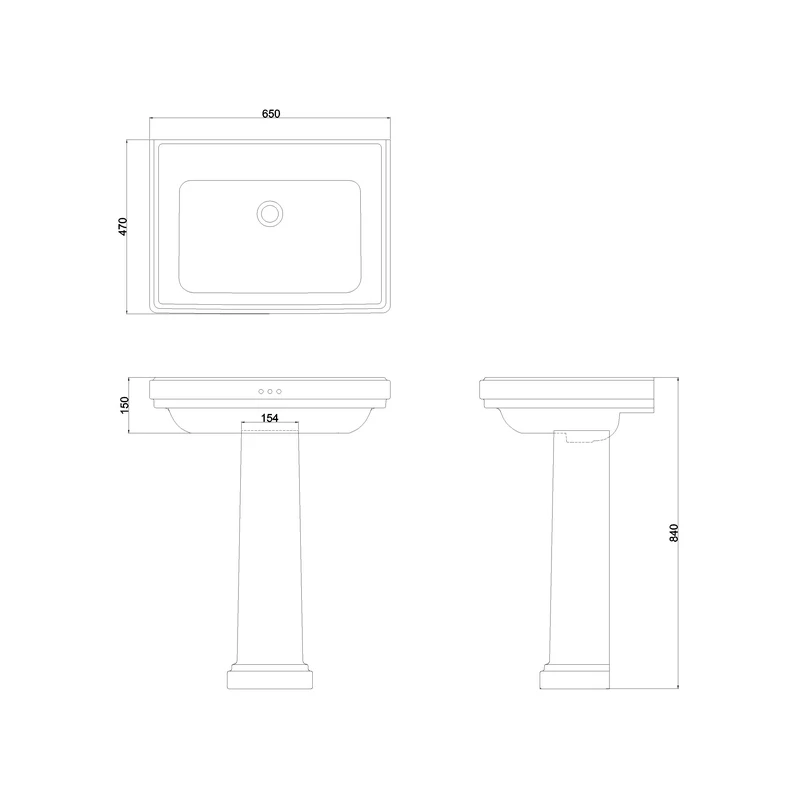 Riviera 65x47cm Square Basin with Riviera Full Pedestal