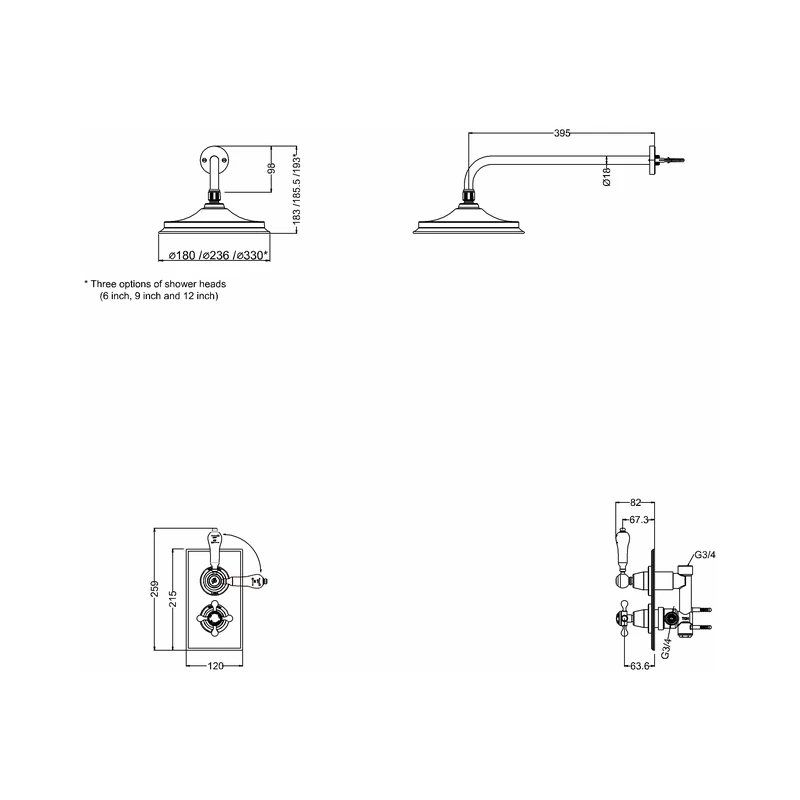 Consists of 1 x 6 inch shower rose (V16) and 1 x Trent Thermostatic Single Outlet Concealed Shower Valve with Fixed Shower Arm (excluding Shower Head) (TF1S)