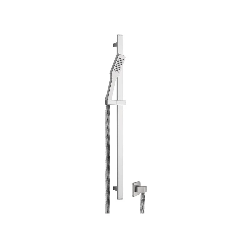 Consists of Flat Soft single function ABS handset with standard hose, Square wall outlet, and Slim Flat 900mm slider bar