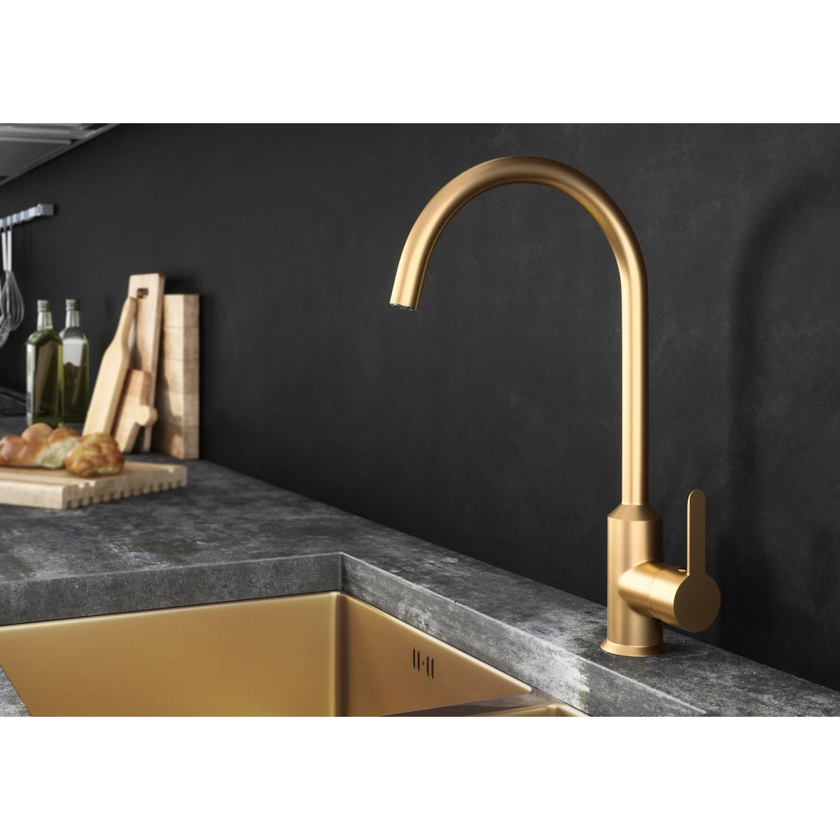 Entice Single Lever Kitchen Sink Mixer Tap with Swivel Spout, Brushed Gold Finish