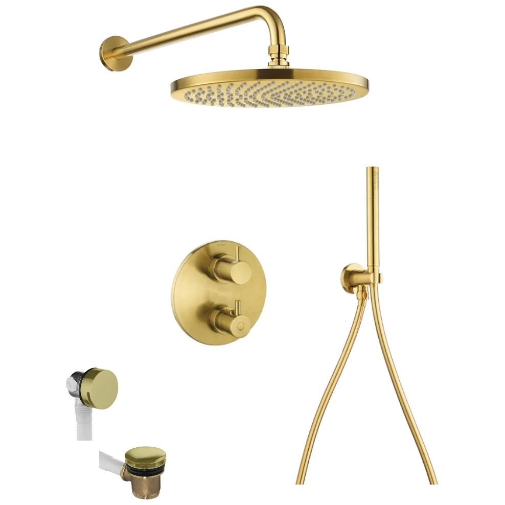 Levo thermostatic 3-outlet shower valve with fixed head, handshower kit and bath overflow filler