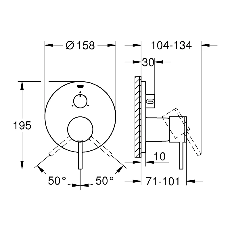 Made in Germany, Grohe’s Atrio presents an iconic silhouette, design with timeless, precise simplicity. The tactile design invites you to interact, with a metal escutcheon and lever offering a feeling of solidity, and the slim profile – the wall plate has a 158mm diameter and a depth of only 10mm – will appeal to design purists. The innovative 3-way diverter projects only 30mm and allows you the freedom to choose bath spout, head and hand shower with an easy turn. Or to switch effortlessly between hand shower and two spray options of a head shower like the Grohe Rainshower SmartActive 2-spray. Thanks to the Grohe SilkMove ceramic cartridge, water temperature and volume are easy to control with a lever that moves super smoothly. The hardwearing, lustrous Grohe StarLight chrome finish will look pristine for years to come. And the Grohe QuickFix escutcheon with a locking system and covered sealing makes the installation swift and easy. Please note that this product must be installed in combination with the Grohe Rapido SmartBox (35600000).