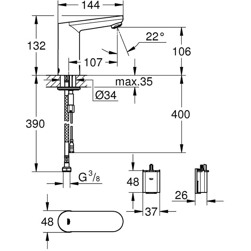 Eurosmart Cosmopolitan E Infra-red electronic basin mixer 1/2″