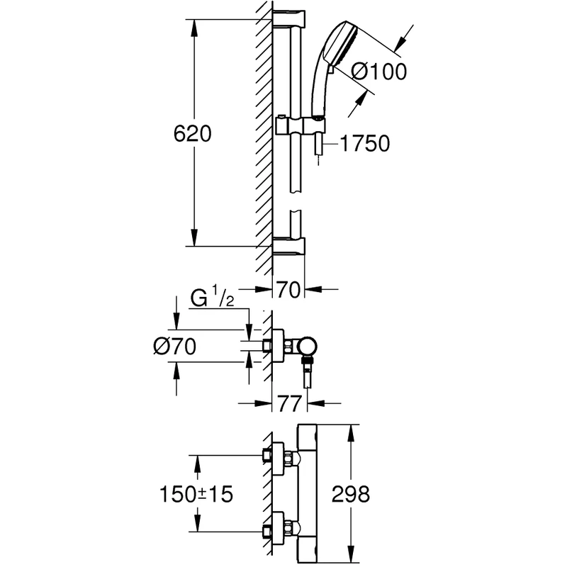 Consisting of Grohtherm 800 Cosmopolitan thermostatic shower mixer 1/2″ (34765 000)