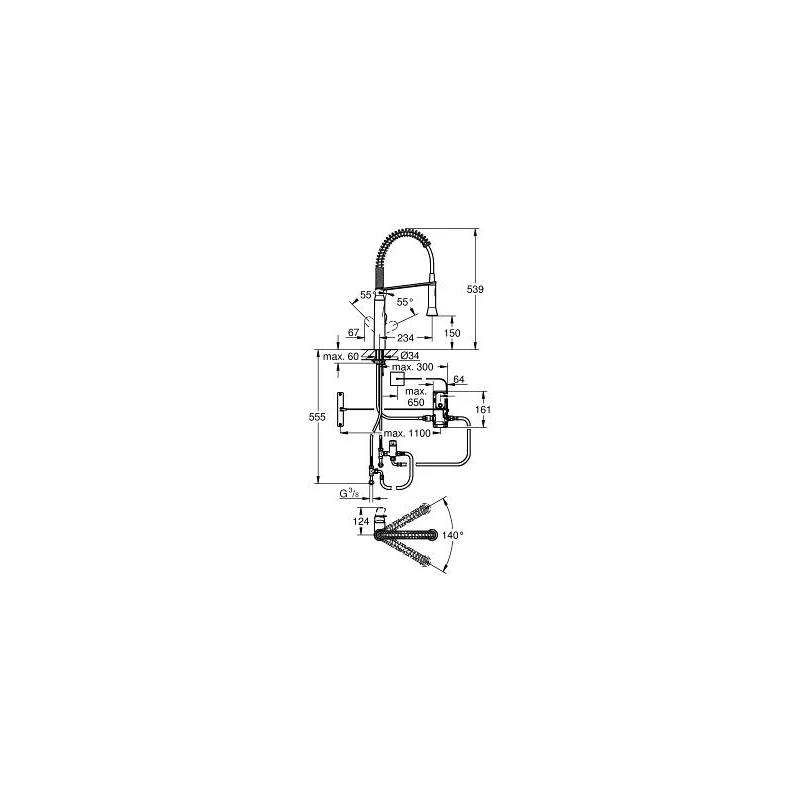 Spout swivels 140°