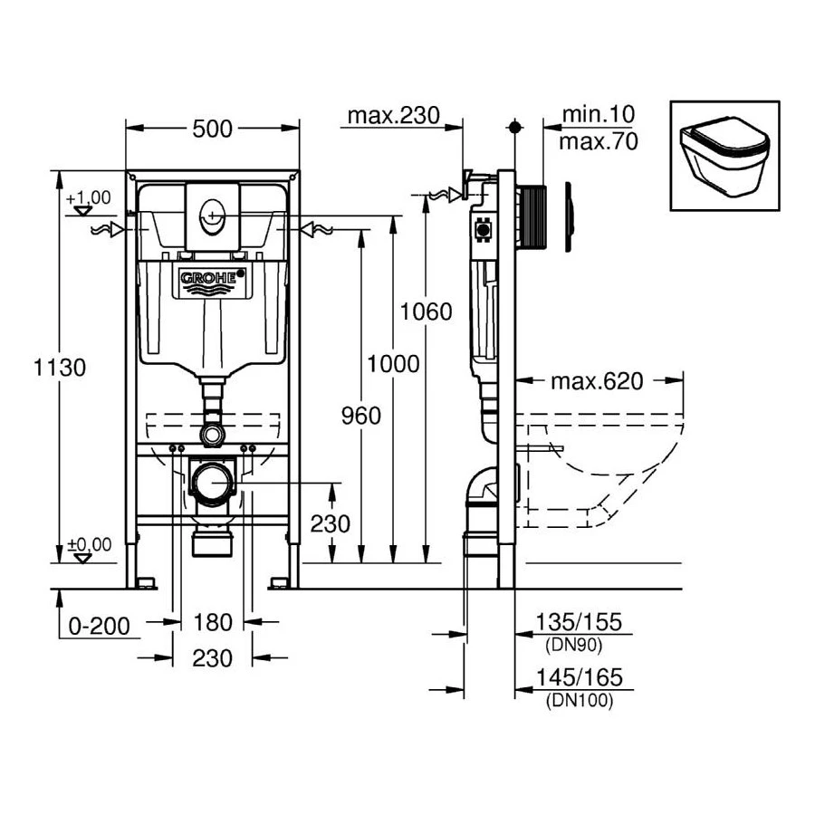 1.13 m installation height