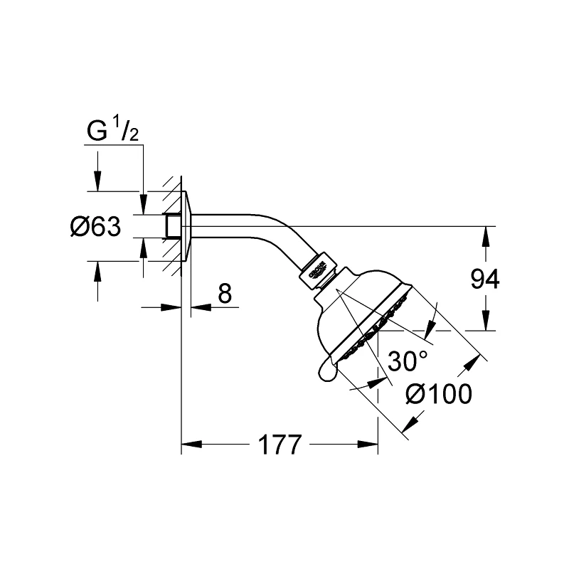 Grohe Rain O2, Rain, Massage, Jet