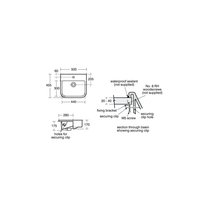 Create Square 50cm semi-countertop washbasin, 1 taphole with overflow