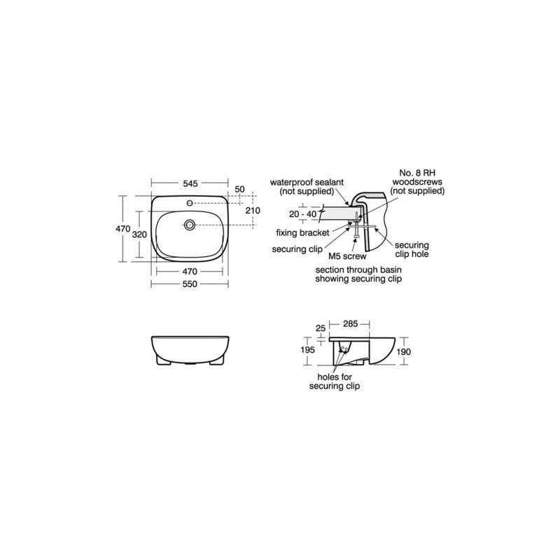 Jasper Morrison 55cm semi-countertop washbasin, 1 taphole with overflow, no chainstay hole