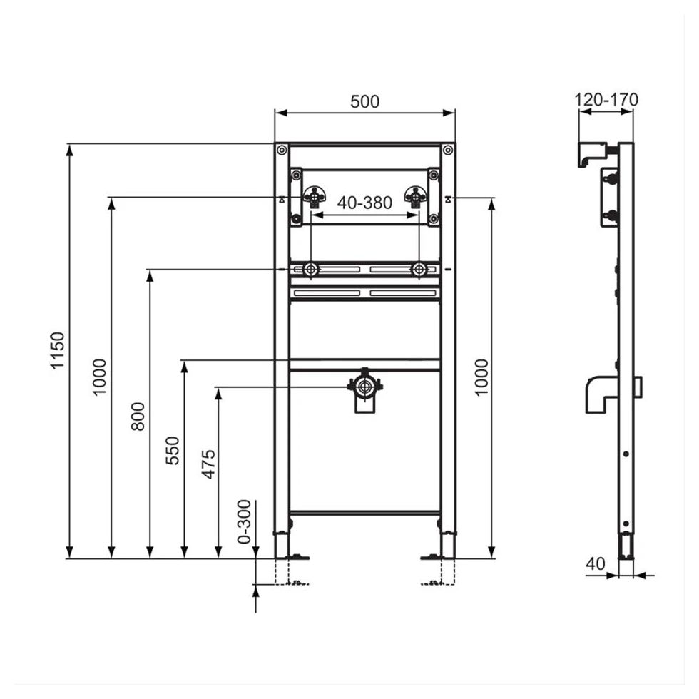 ProSys washbasin frame for wall mounted taps