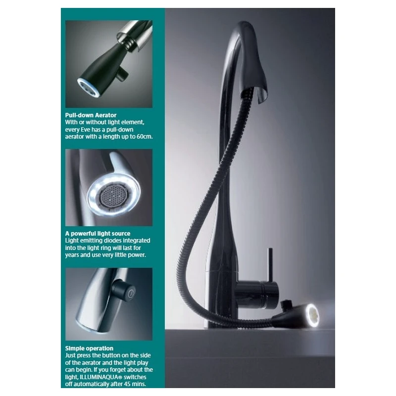 Eve kitchen sink mixer with pull-out aerator (with light)