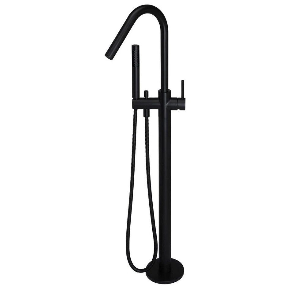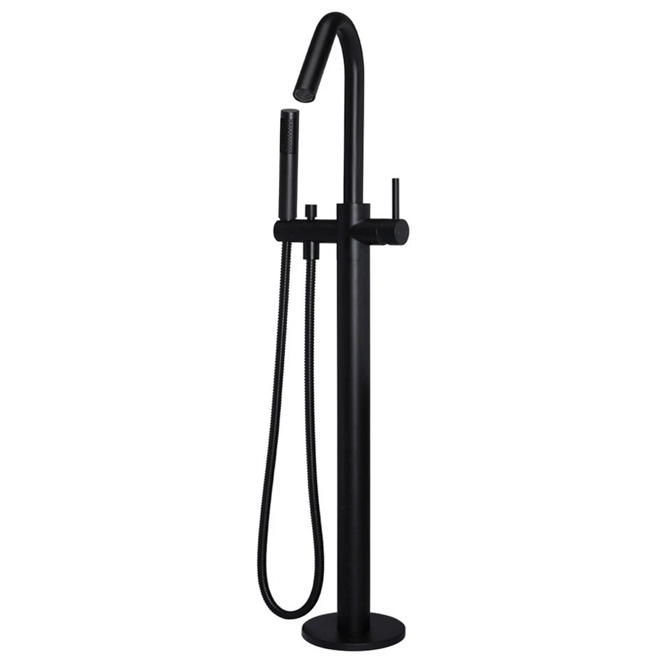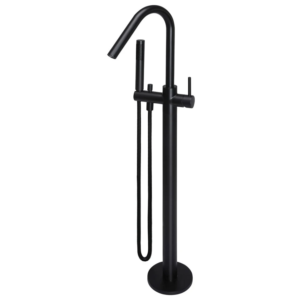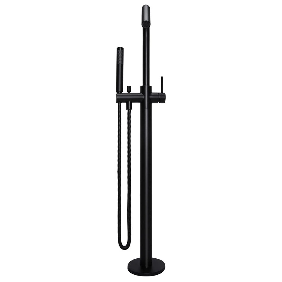 Round Freestanding Bath Spout and Hand Shower, Matte Black finish
