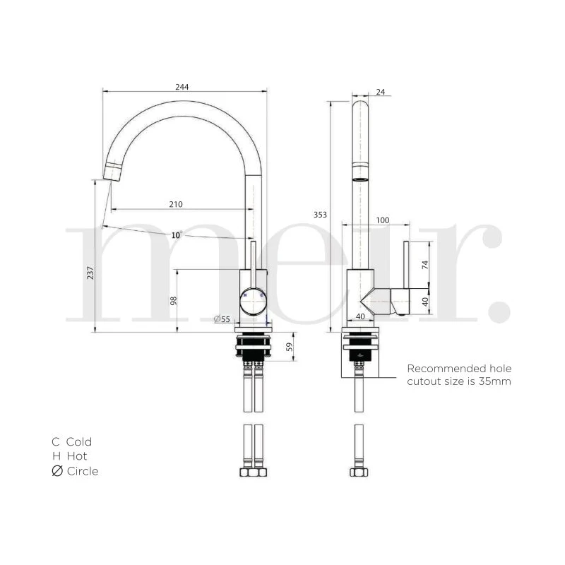 Round Kitchen Mixer Tap, Champagne finish