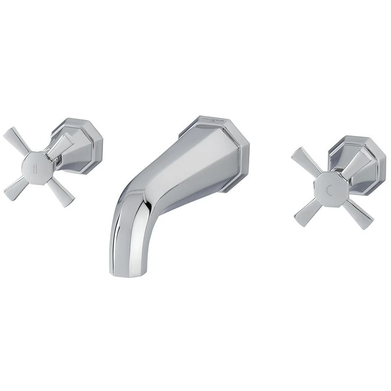 Deco Three-Hole Wall-Mounted Bath Filler with Crosstop Handles