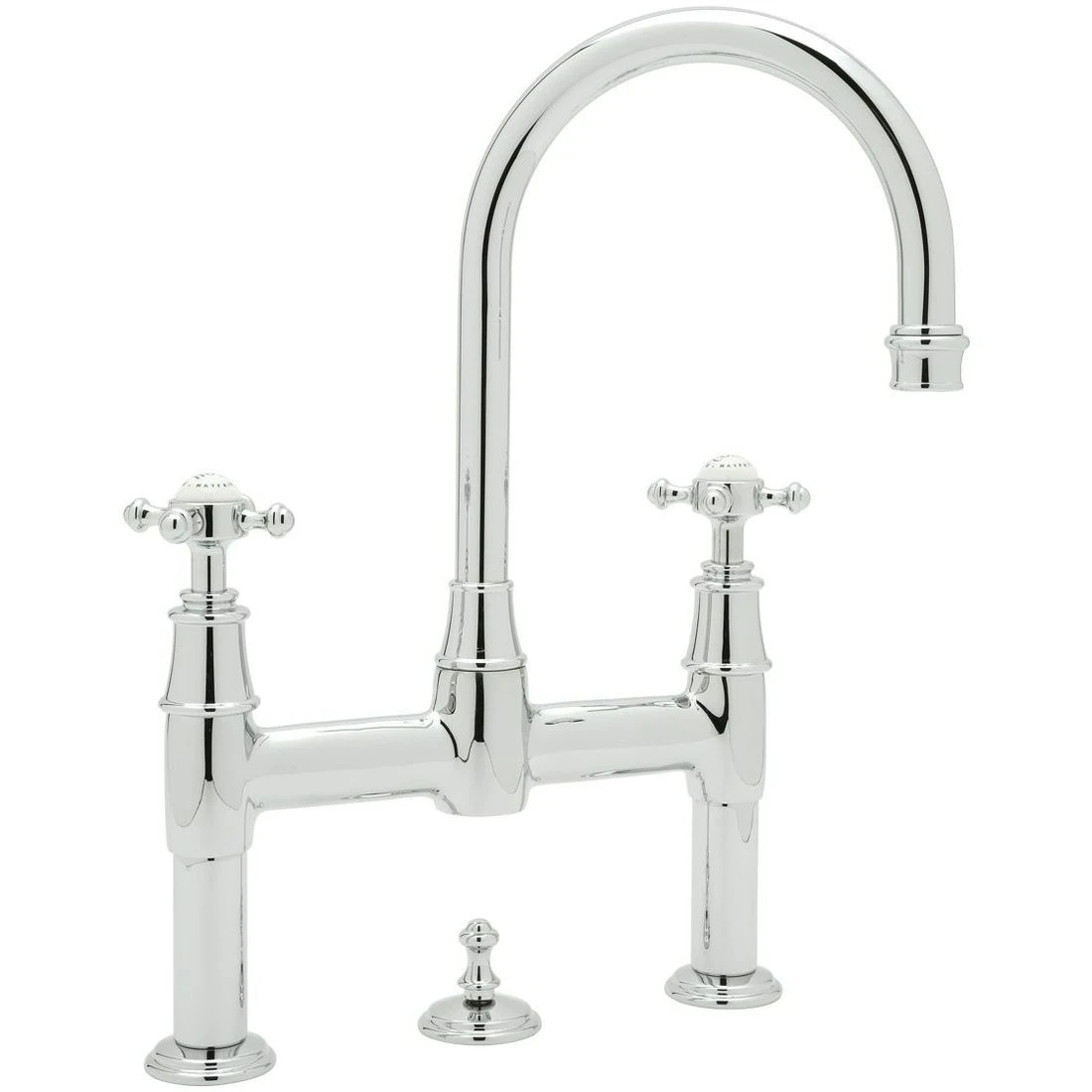 Georgian 3 Hole Deck Mounted Bridge Mixer Tap with Pop-Up Waste and Cross Handles, Chrome