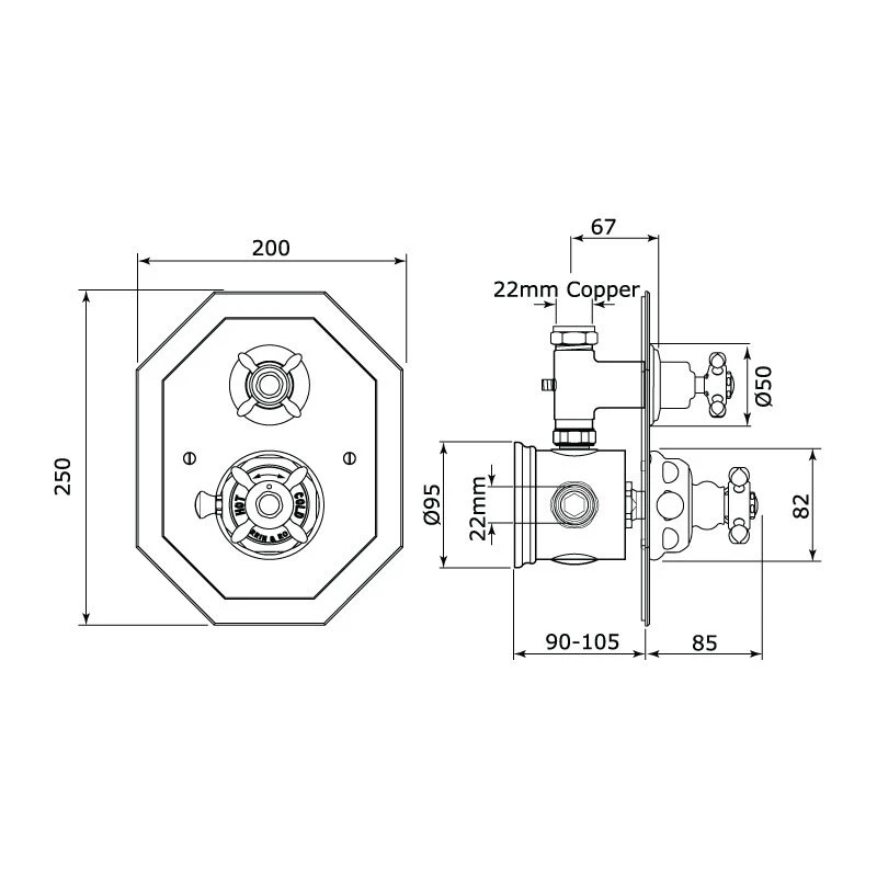 Traditional Concealed Thermostatic Shower Mixer with Crosshead Handles, Chrome