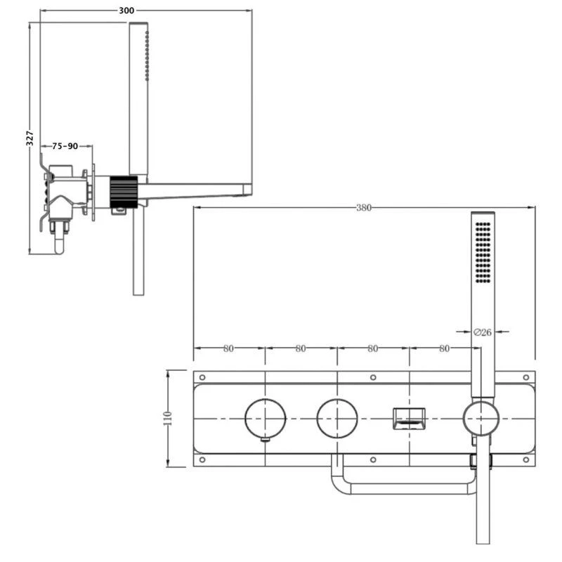 RAK Amalfi Thermostatic Concealed Dual Outlet Shower Valve with Handset and Bath Spout