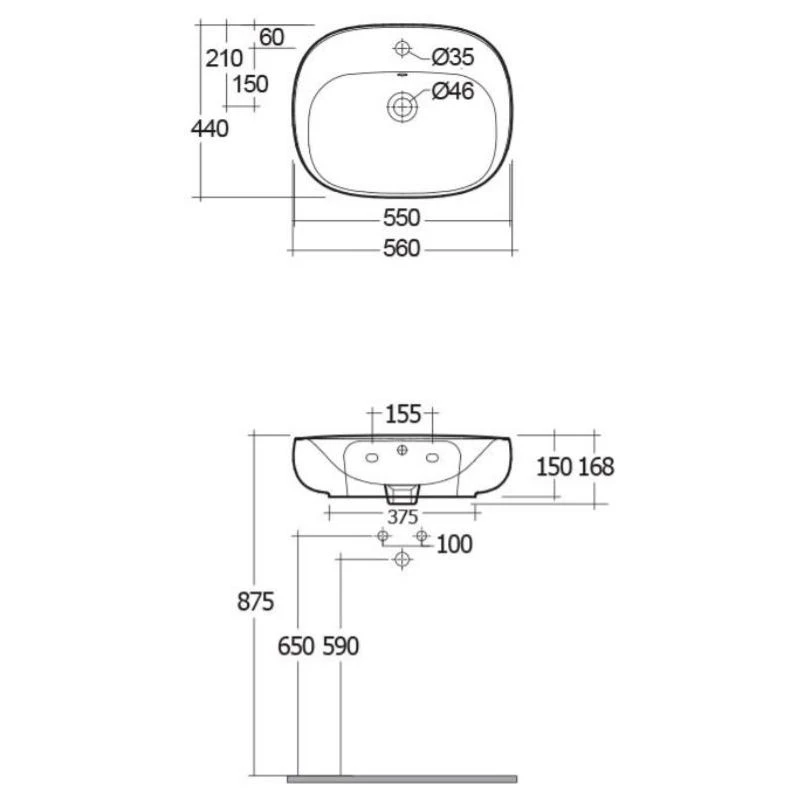 Width 560mm, Depth 440mm, Height 168mm