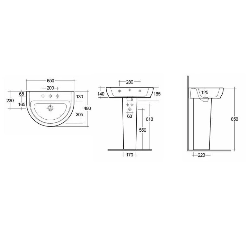 RAK Moon 650mm 1 Tap Hole Basin and Full Pedestal Pack