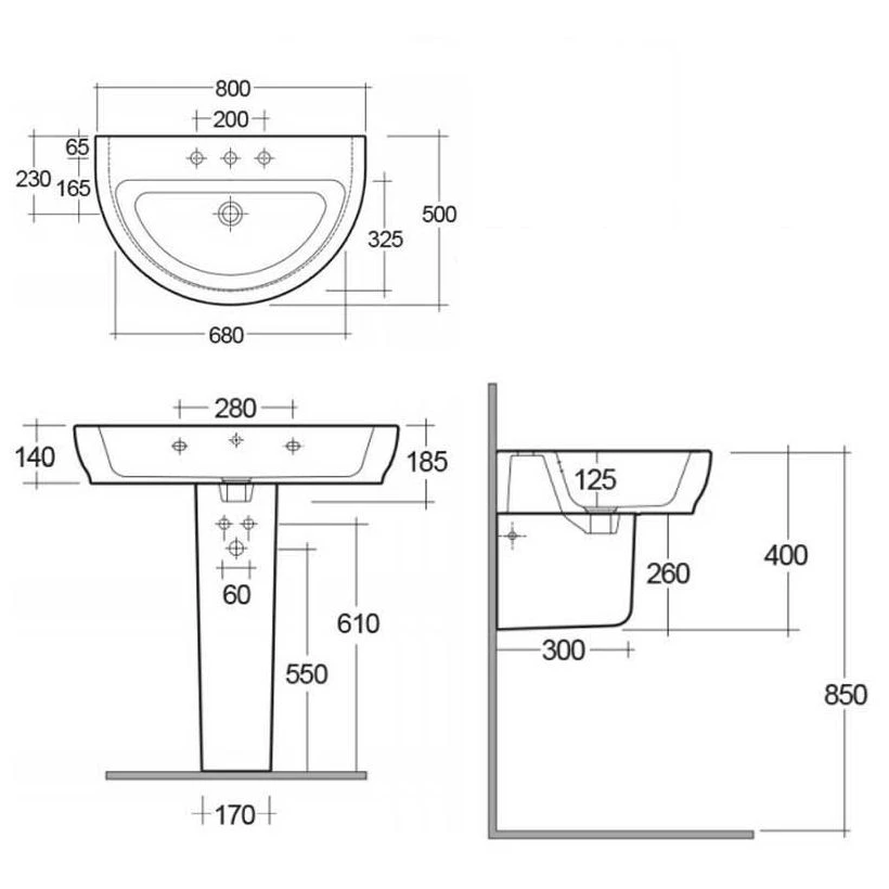 RAK Moon 800mm 1 Tap Hole Basin and Semi Pedestal Pack
