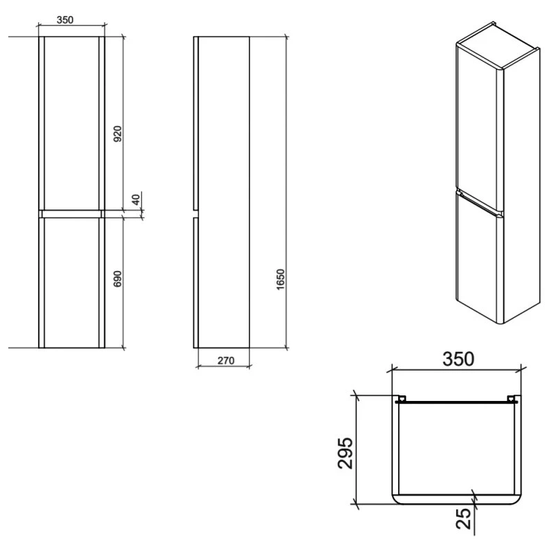 RAK Resort 350x1650mm Tall Storage Unit in Matt Denim Blue