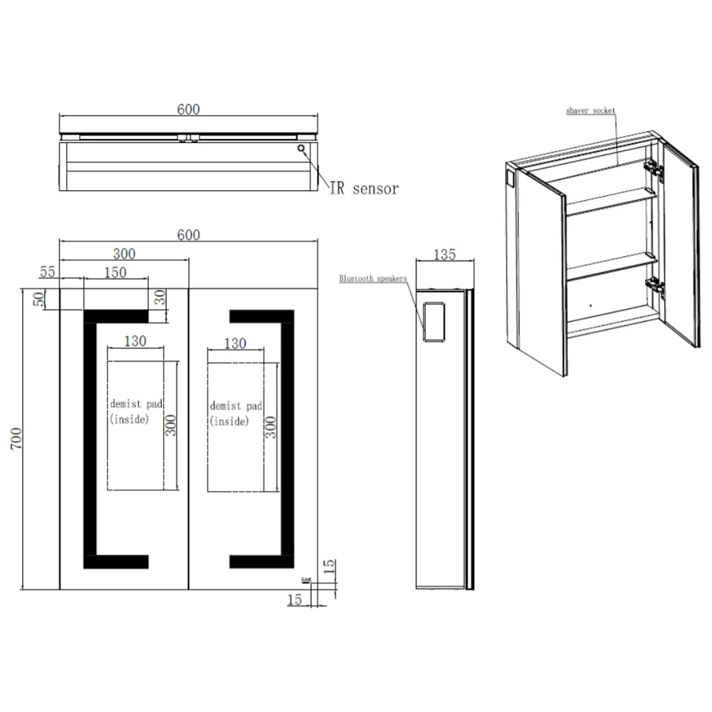 RAK Sagittarius 600x700mm LED Illuminated Mirrored Bluetooth Cabinet