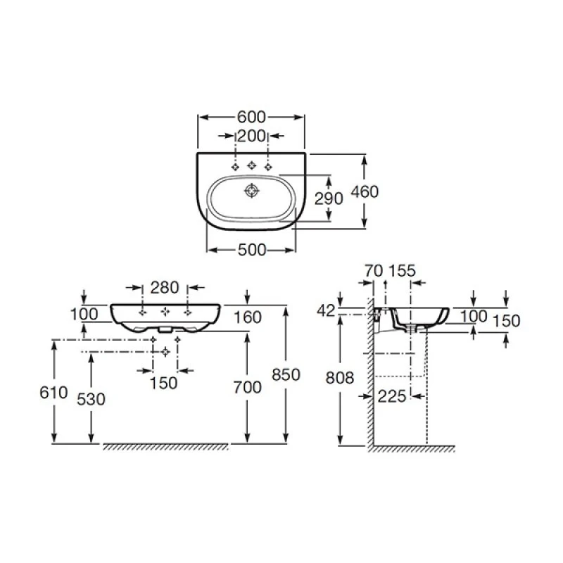 Roca Meridian-N 600mm 1 Tap Hole Basin and Full Pedestal Pack