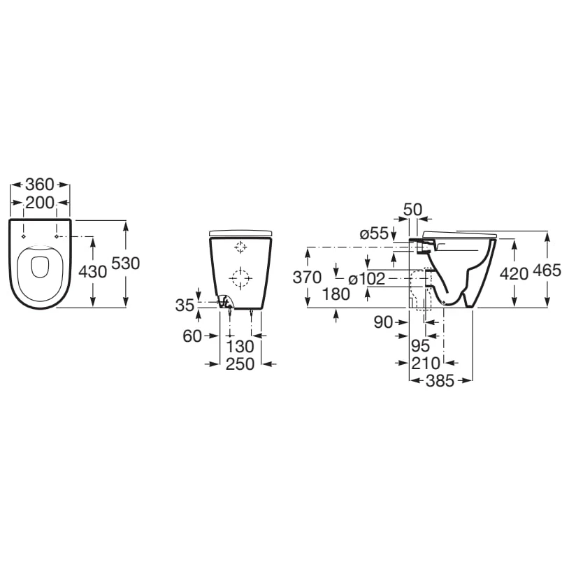 Roca Ona Vitreous China back to wall close coupled WC pan with dual outlet