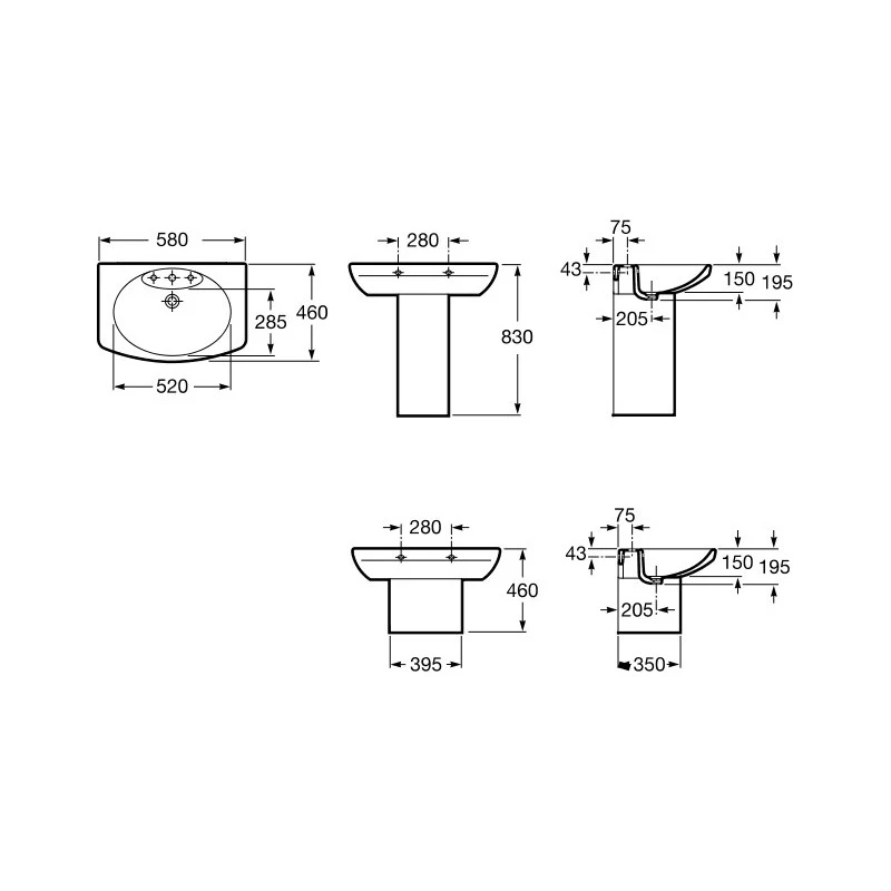 Length: 580mm, Width: 460mm, Height: 195mm