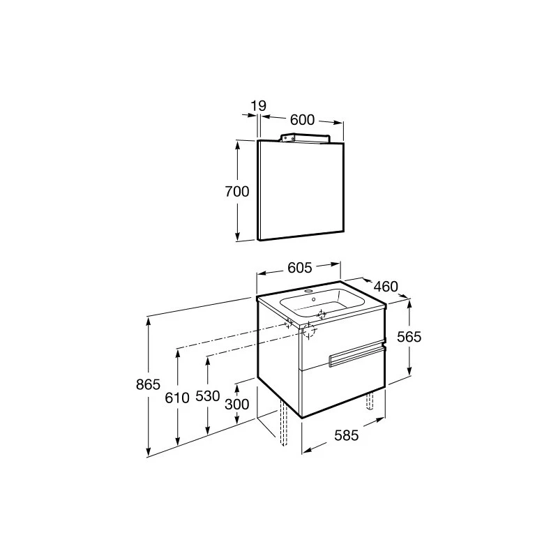 Mirror Height: 700mm, length: 600mm, width: 19mm