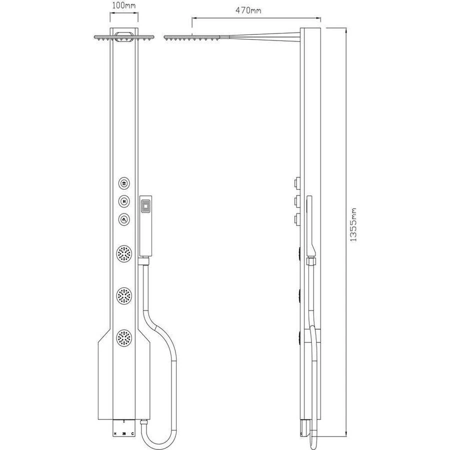 Depth 470mm, Width 100mm, Height 1355mm