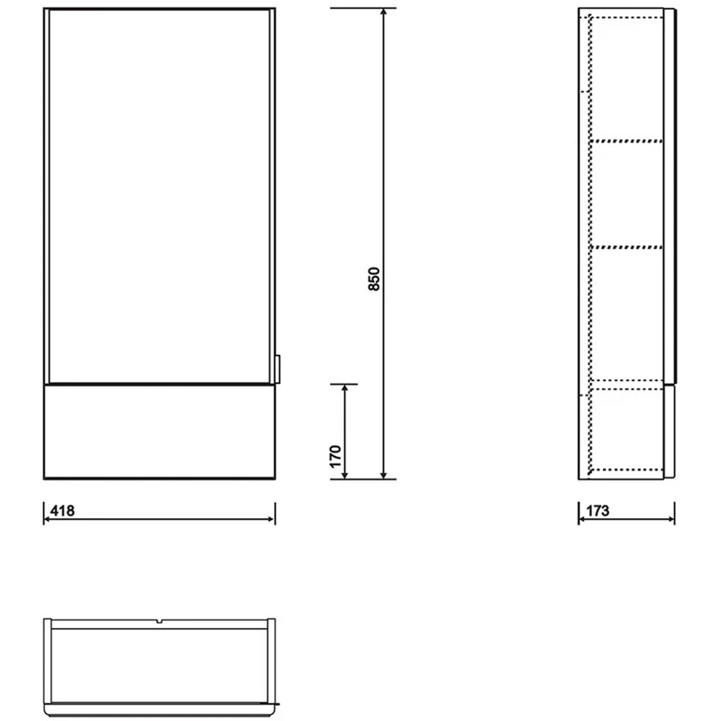 E100 Mirror Cabinet 418mm Wide, White Gloss