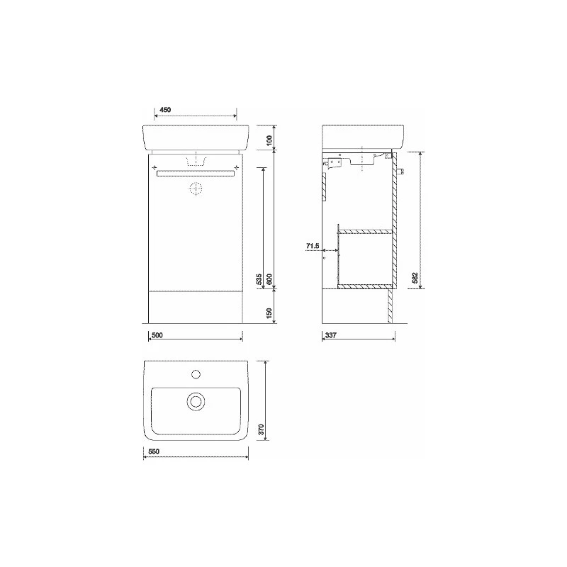 * E200 Vanity Unit for Washbasin 550×370 – White E20173WH