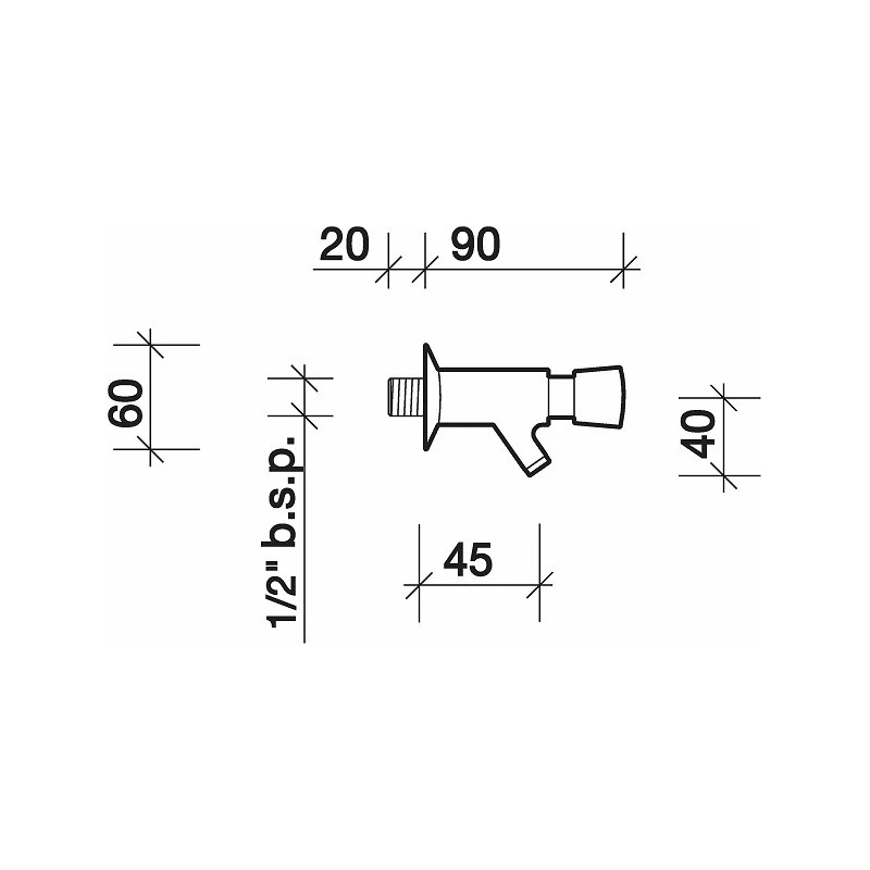 At inlet pressure of 1 bar, tap gives approximately 10 seconds ( or – 3 seconds) of flow after button is pressed