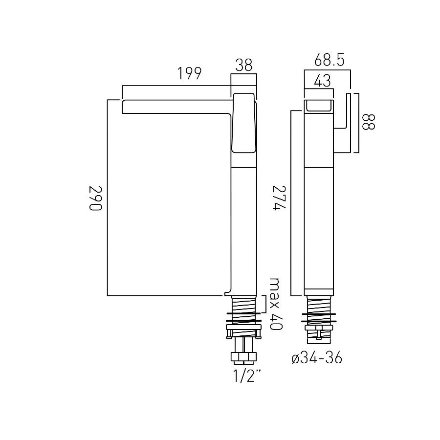 Deck mount drill hole diameter 35mm